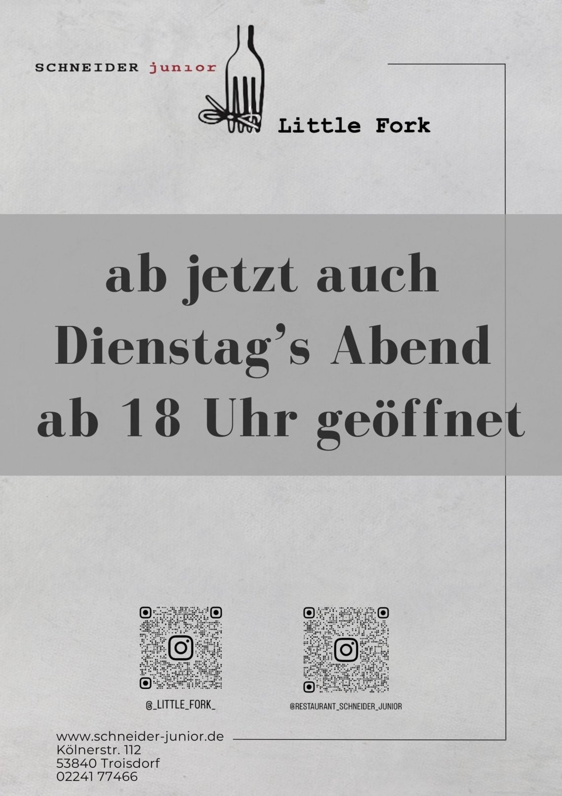 Dienstag - Samstag ab 18.00 Uhr