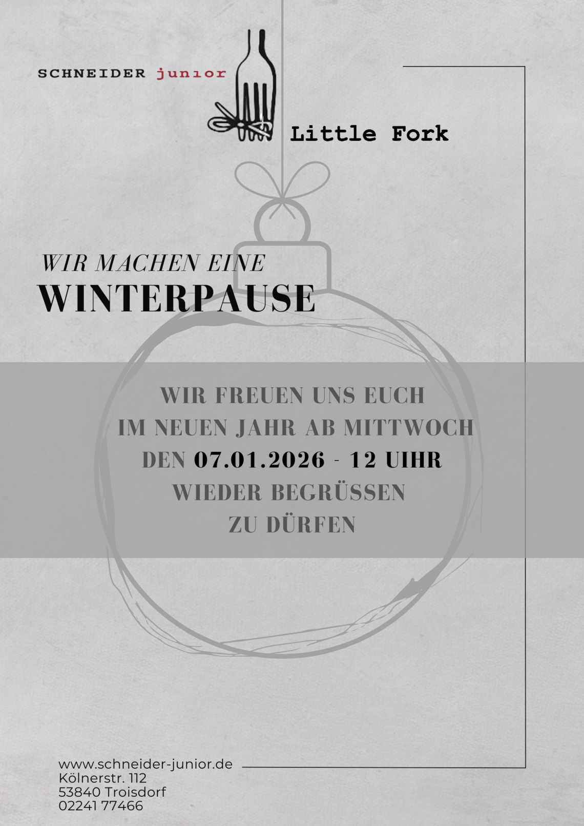 Wir freuen uns Euch ab dem 07.01.2026 um 12 Uhr wieder begrüßen zu dürfen!
